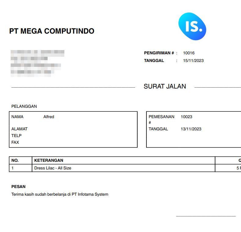 - Anda dapat mengunduh formulir pengiriman penjualan tersebut atau langsung mencetak dengan klik pada tombol seperti berikut.