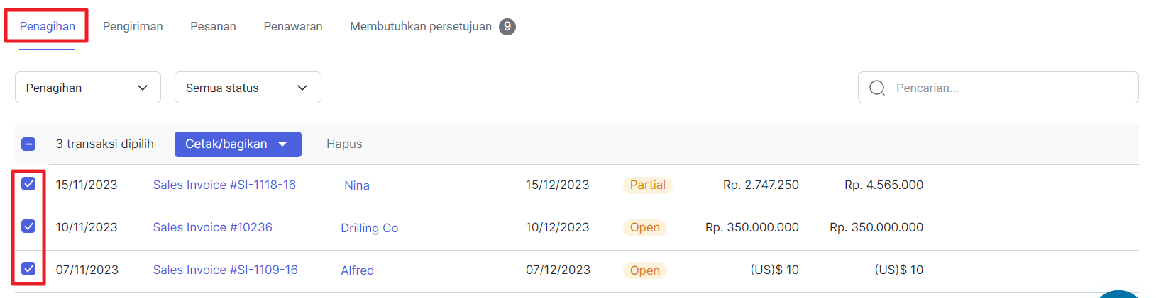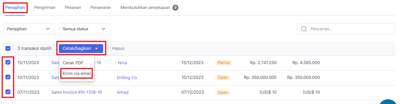 Dalam pemesanan penjualan, Anda bisa mengirimkan email invoice kepada pelanggan. Namun kini, Anda bisa mengirimkan beberapa invoice sekaligus melalui email. Berikut langkah-langkahnya.