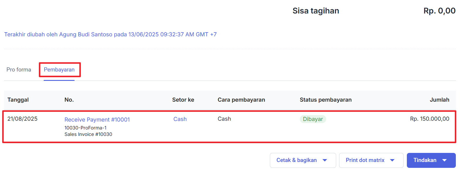 Dengan demikian Anda dapat melihat history pembayaran pada tab Pembayaran.