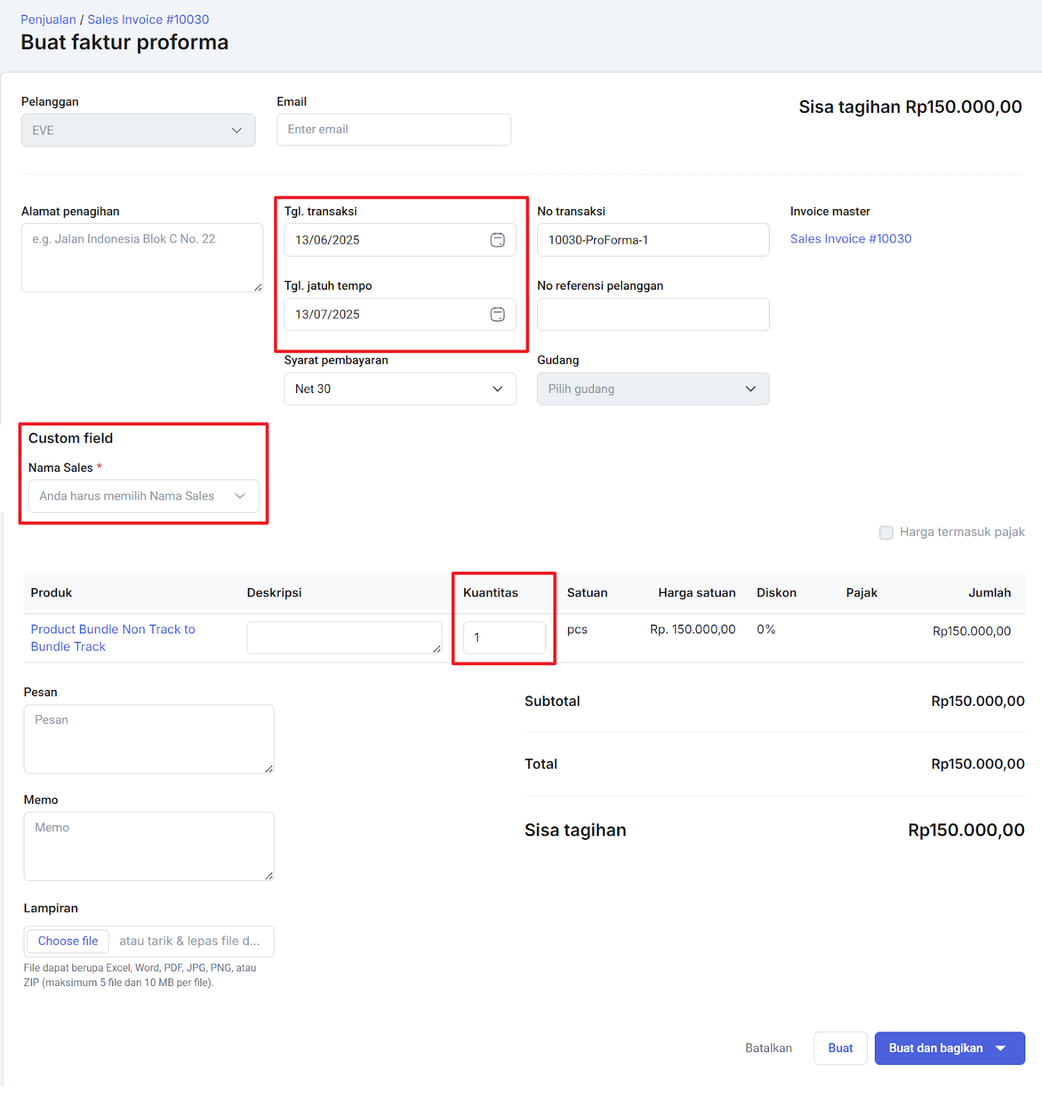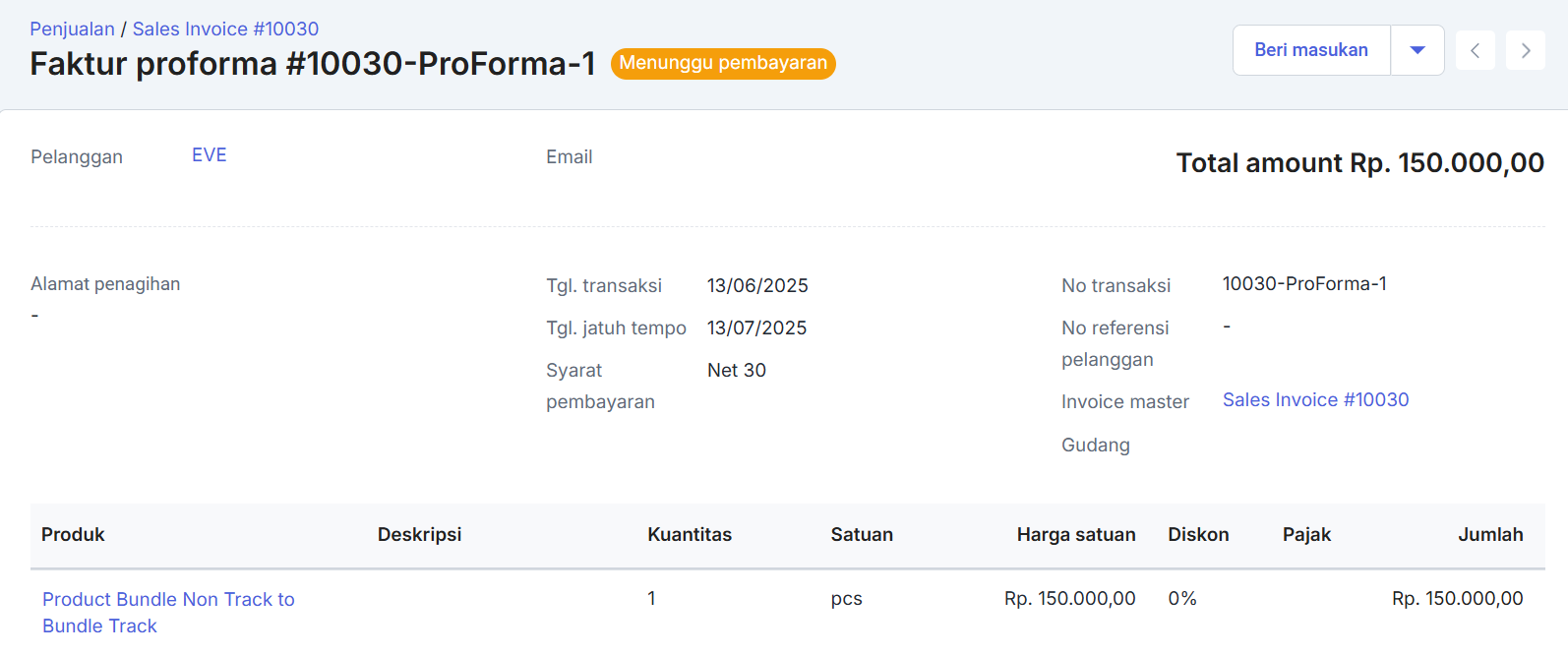 Contoh Kasus Penggunaan Fitur Faktur Pro Forma