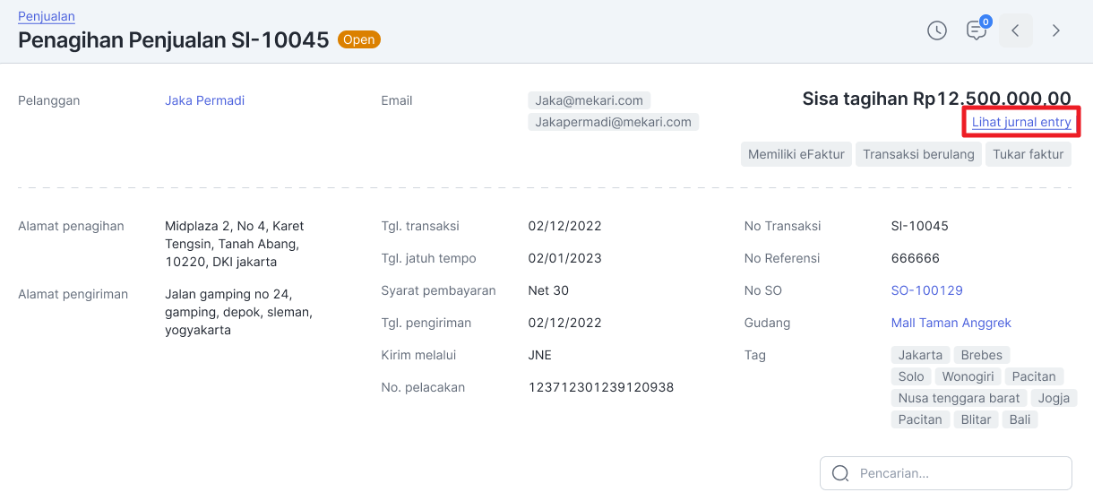 Demikian penjelasan mengenai informasi jurnal entry pada transaksi. Selanjutnya, pelajari mengenai cara membuat penagihan penjualan, di sini.