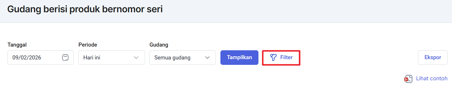 Demikian penjelasan mengenai cara melihat Laporan Gudang Berisi Produk Bernomor Seri. Selanjutnya, pelajari mengenai cara melihat laporan kuantitas produk dengan nomor seri, di sini.