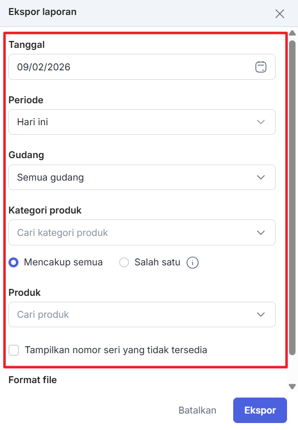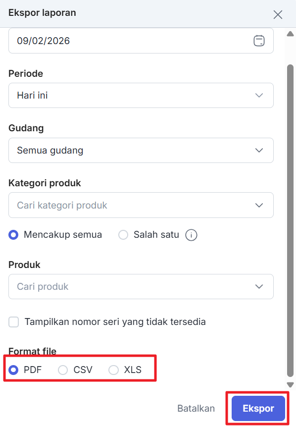 Lalu pilih format file pada laporan yang ingin di unduh. Dan klik “Ekspor”.