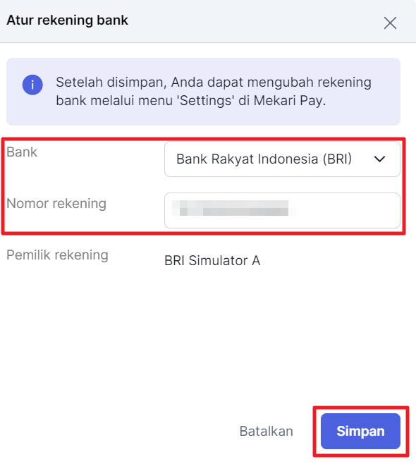 - Jika Anda belum mengatur nomor rekening, maka Anda dapat klik “Atur rekening bank”.