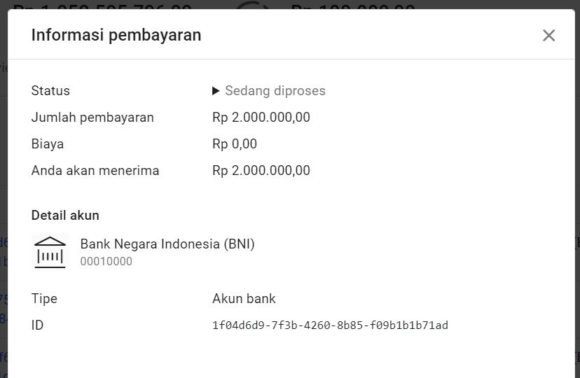Maka akan ditampilkan detail penarikan saldo sebagai berikut.