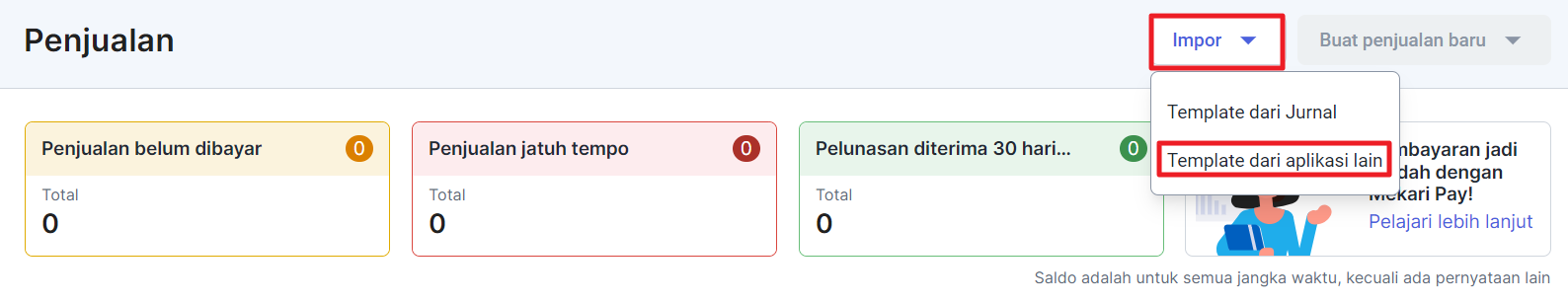 - Klik “Import” dan pilih Template dari Aplikasi Lain.