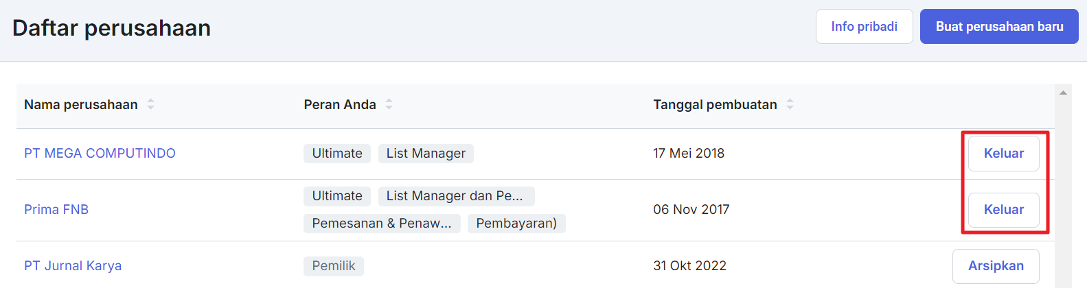 Demikian penjelasan mengenai cara keluar dari akun perusahaan di Jurnal. Selanjutnya, pelajari cara memindahkan ownership perusahaan, di sini.