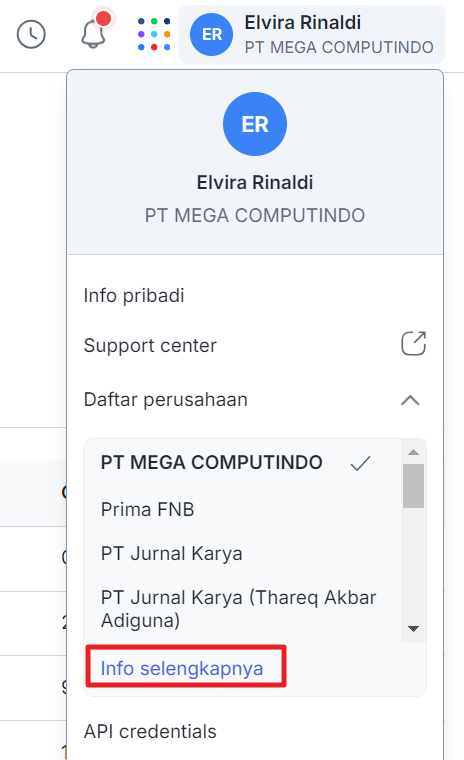 Klik "Profil" di pojok kanan atas, dan klik "Info selengkapnya" pada bagian Daftar Perusahaan.