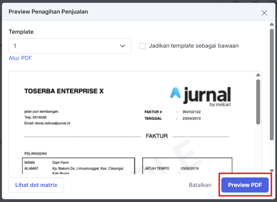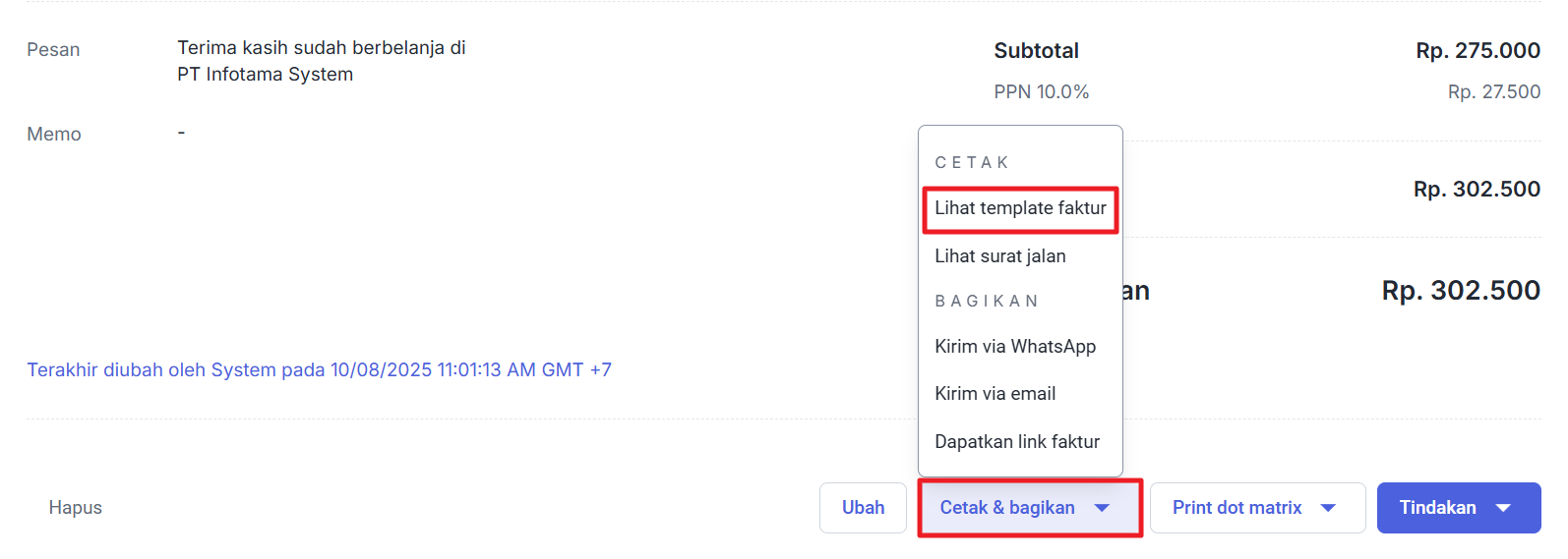 Klik “Cetak & bagikan” dan pilih Lihat template faktur.
